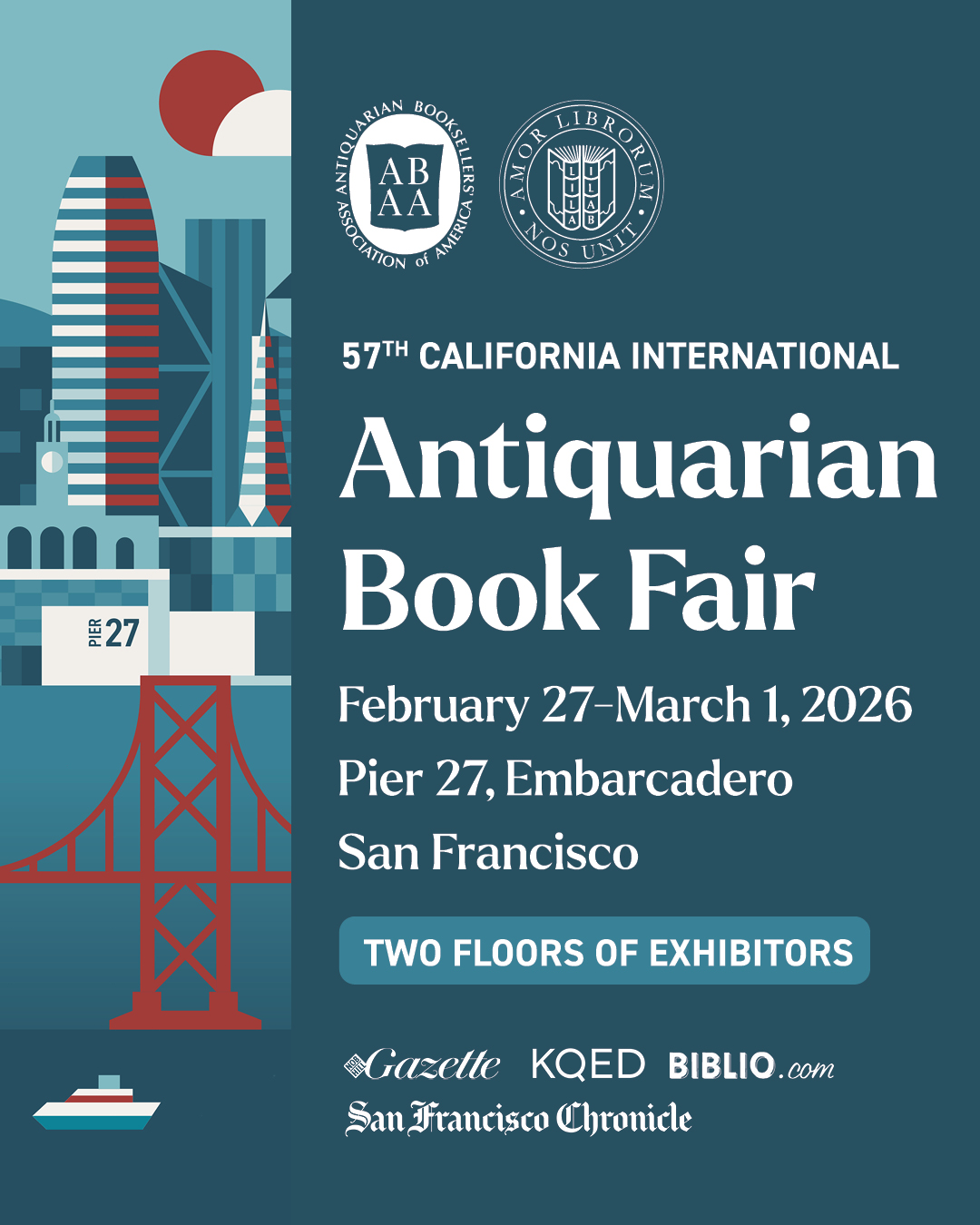 ABAA California International Antiquarian Book Fair February 27, 2026–March 1, 2026: ABAA California International Antiquarian Book Fair (San Francisco, California) Read more