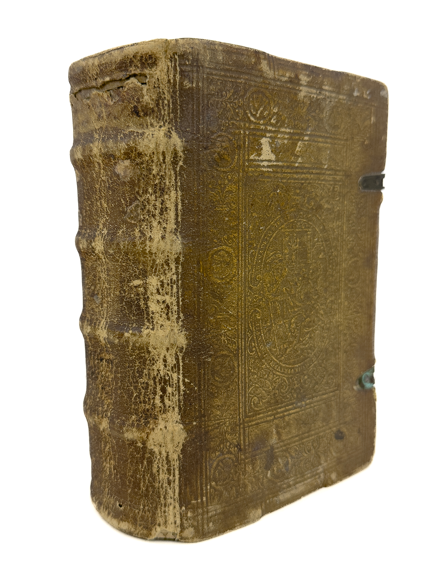 Basel: Ludovici Regis, 1617. Thick 8vo. (96),942,(72)pp. Indices. Printer’s woodcut device on title. Orig. roll-tooled pigskin, somewhat rubbed. Fore-edge clasps. Small hole at outer blank edge of title & next two leaves.. The author’s (d. 1524) often reprinted work on numerous topics of ancient history. This edition has additions by L. Geoffroi and L. G. Giraldi and is edited by Johann Jakob Grasser.