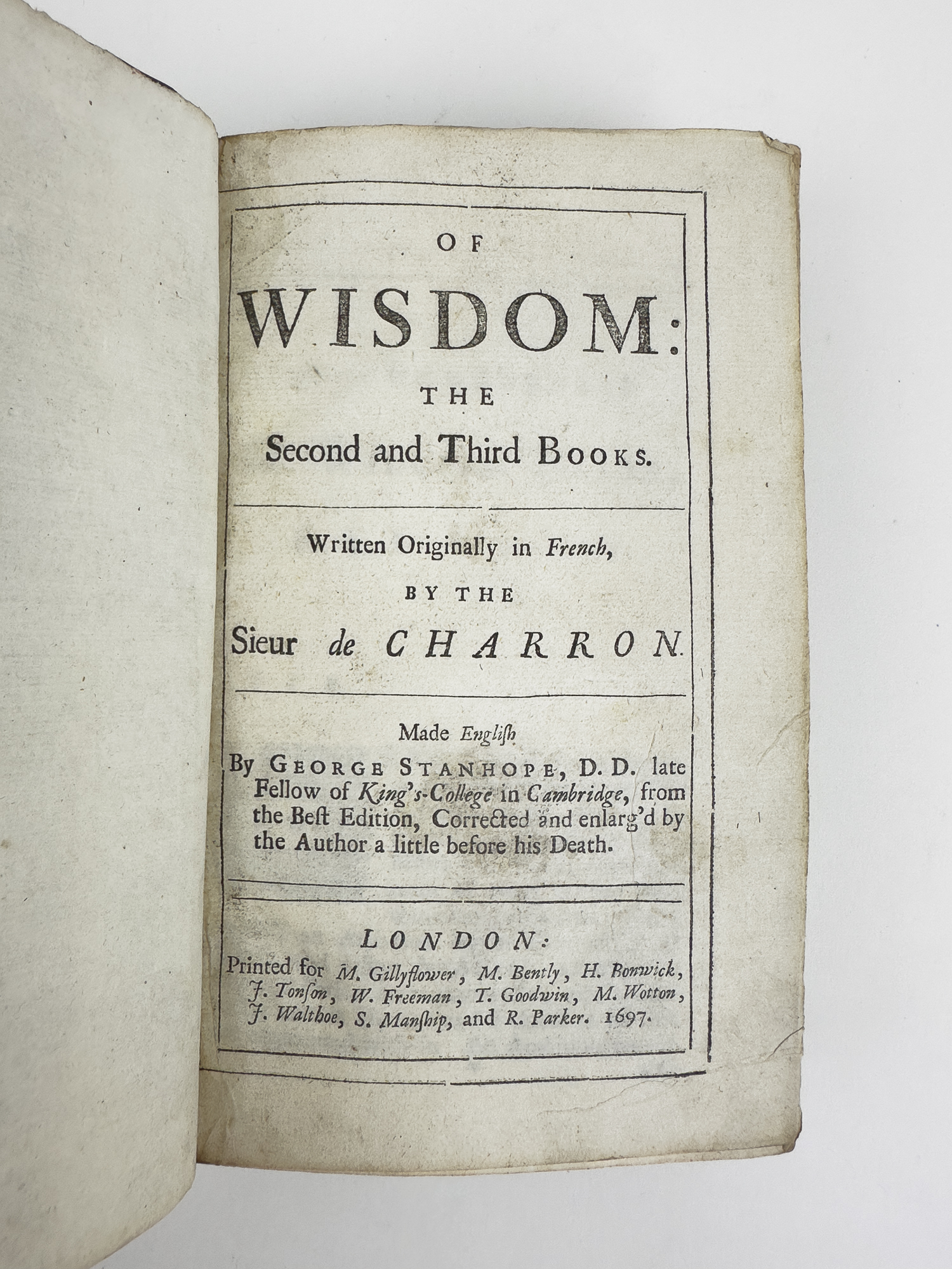 | Title | OF WISDOM: THE SECOND AND THIRD BOOKS. Written Originally in French, Made English by George Stanhope… from the Best Edition, Corrected and Enlarg’d by the Author a Little Before His death. |